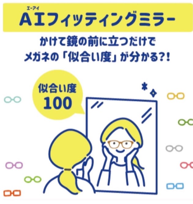 『AIフィッティングミラー』 メガネの似合い度を点数表示してくれます。 メガネ選びに迷った時、役立つ新しいスタイルです‼︎