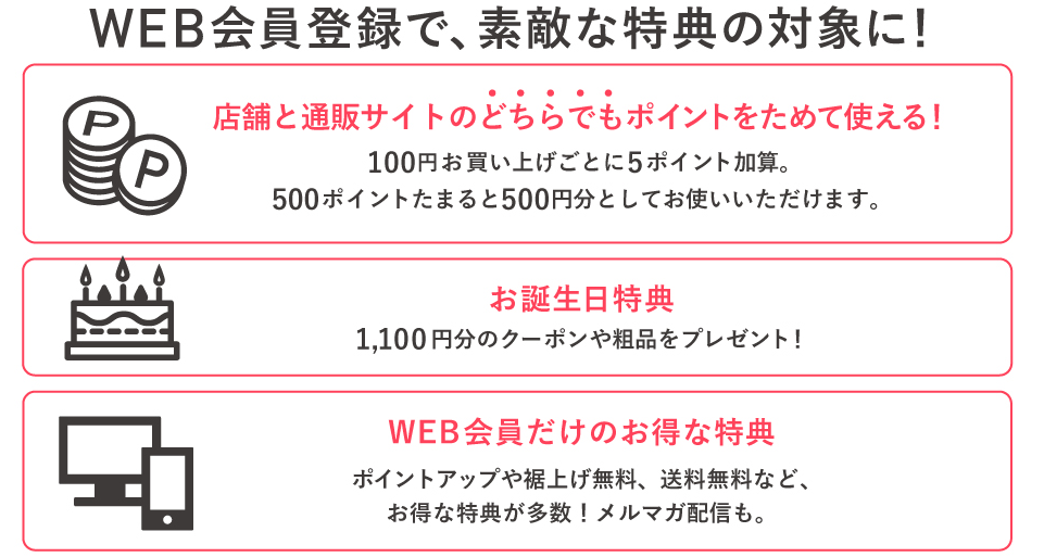 店舗と通販サイトのどちらでもポイントをためて使える!