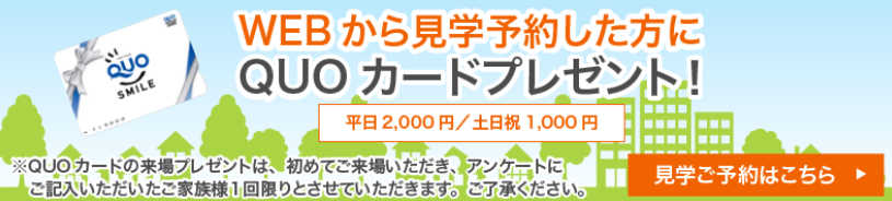 QUOカードの来場プレゼントは、初めてご来場いただき、アンケートにご記入いただいたご家族様1回限りとさせていただきます。詳細はホームページをご覧ください。
