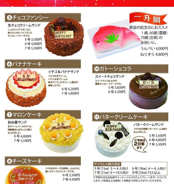 バースデーケーキをご予約の方には、メッセージや名前入りのチョコプレートをサービスします。
