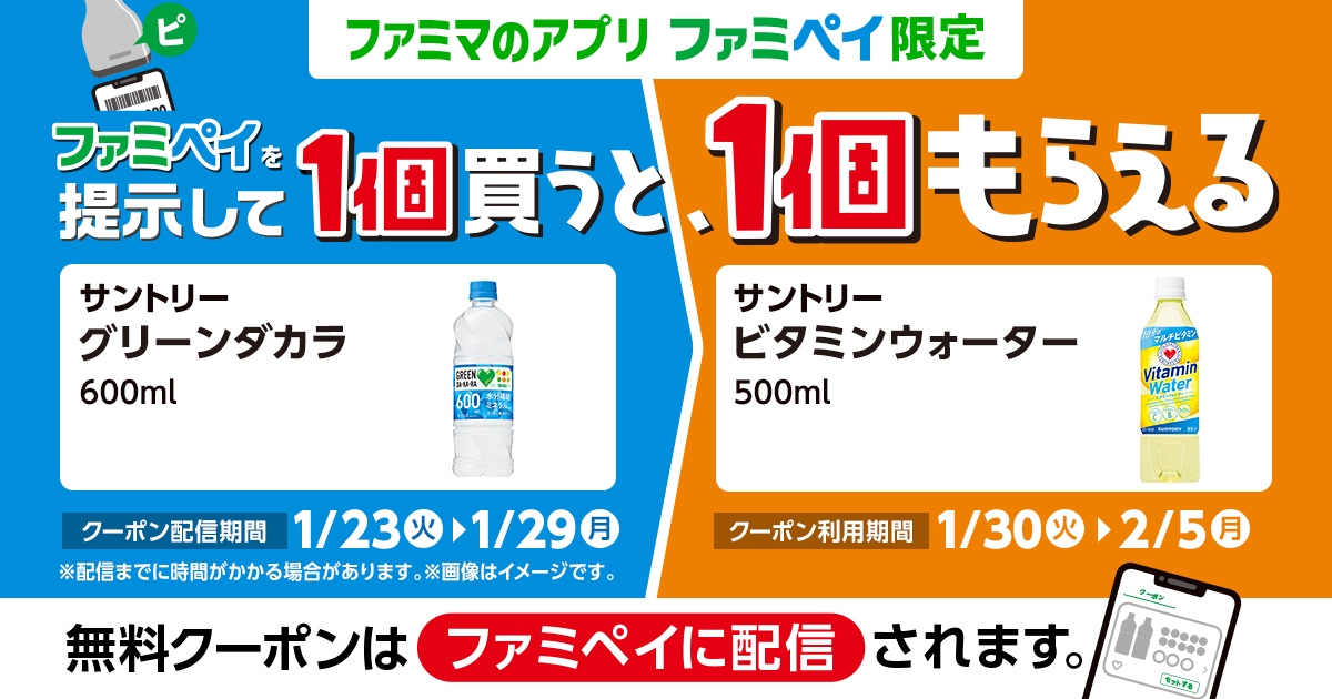 【ファミマのアプリ ファミペイ限定】無料クーポン券がもらえる!