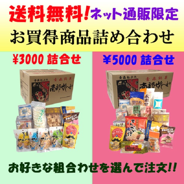 3,000円または5,000円のお買い得商品の詰め合わせ、ネット通販限定の送料無料おすすめ商品です。