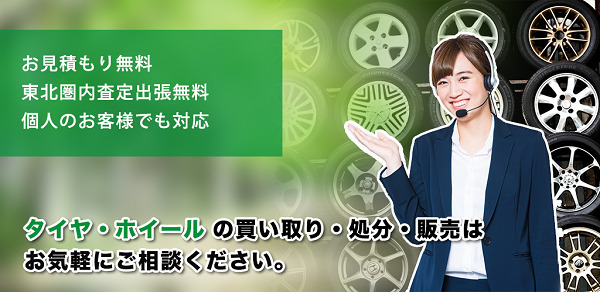 タイヤ、ホイールの買い取り、処分などのお見積もりは無料。東北圏内であれば出張査定は無料。