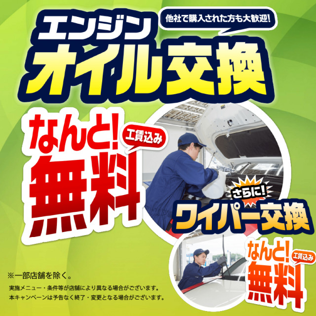 現在ネクステージグループでは、愛車のエンジンオイルを工賃込み無料で交換させていただいております。国産車ならボディタイプを問わずオイル交換無料の対象になります。事前にご予約する必要ございませんが、作業前にお車に搭載されている車検証をご確認させていただきます。*本キャンペーンは予告なく終了・変更する場合がございます。お気を付けください。
