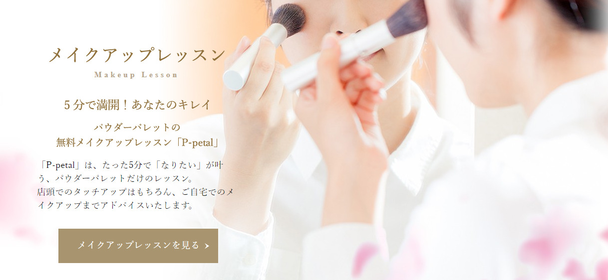 店頭でのタッチアップはもちろん、ご自宅でのメイクアップまでアドバイスいたします。