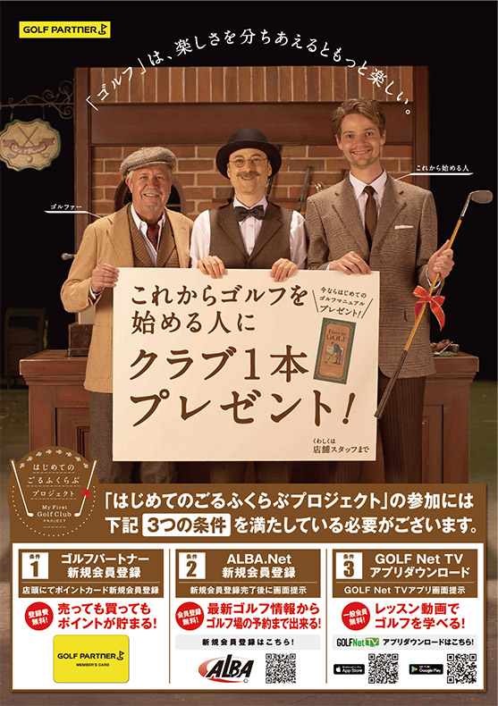 【ゴルフパートナー】これからゴルフを始める人に、ゴルフクラブ1本プレゼント!