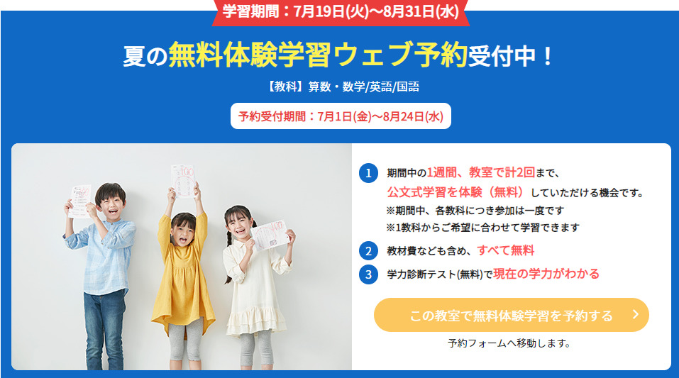 公文式市役所前教室  夏の無料体験学習ウェブ予約受付中!