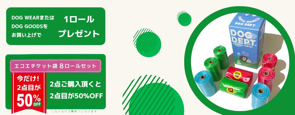 DOG WEARまたはDOG GOODSをお買い上げでエコエチケット袋1ロールプレゼント! なくなり次第終了となります。