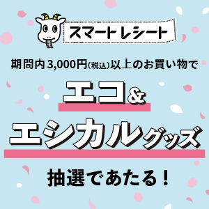 期間中3,000円以上のお買上げで「エコ&エシカルグッズ」が合計1,000名様に当たる!