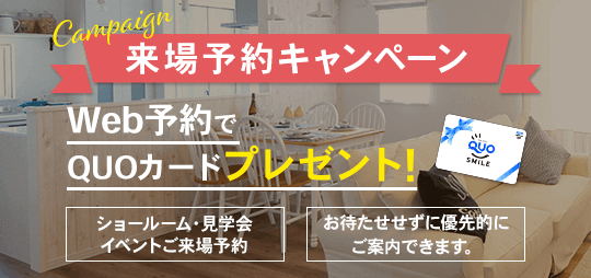WEB予約でQUOカードもプレゼント!【7月1日~9月30日】夏の来店予約キャンペーン!土日来場予約なら1000円分、平日来場予約なら3000円分。それに加えて事前アンケートに回答されると+1000円分、土地探しのプロに会員登録で+1000円分。つまり、最大5000円のQUOカードプレゼント!