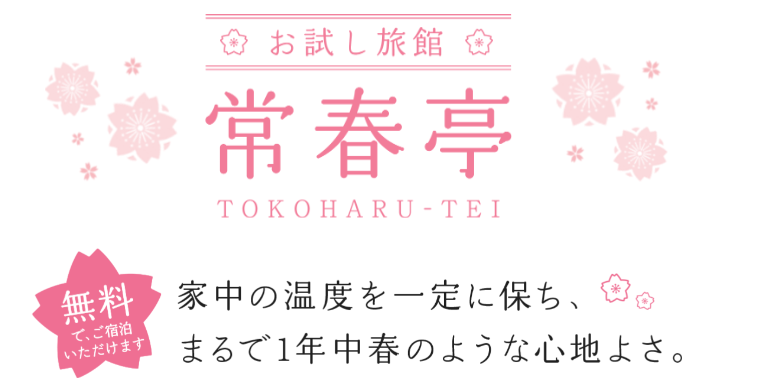 リベストでは納得して家づくりを決めていただくために、当社の建物に実際に泊まって、住み心地や快適性をご確認いただける宿泊体験可能なモデルハウス「常春亭」(とこはるてい)をご用意しています。YUCACOが本当に良い住まいか、本当に快適に過ごせるのか。ぜひ宿泊してご確認ください。