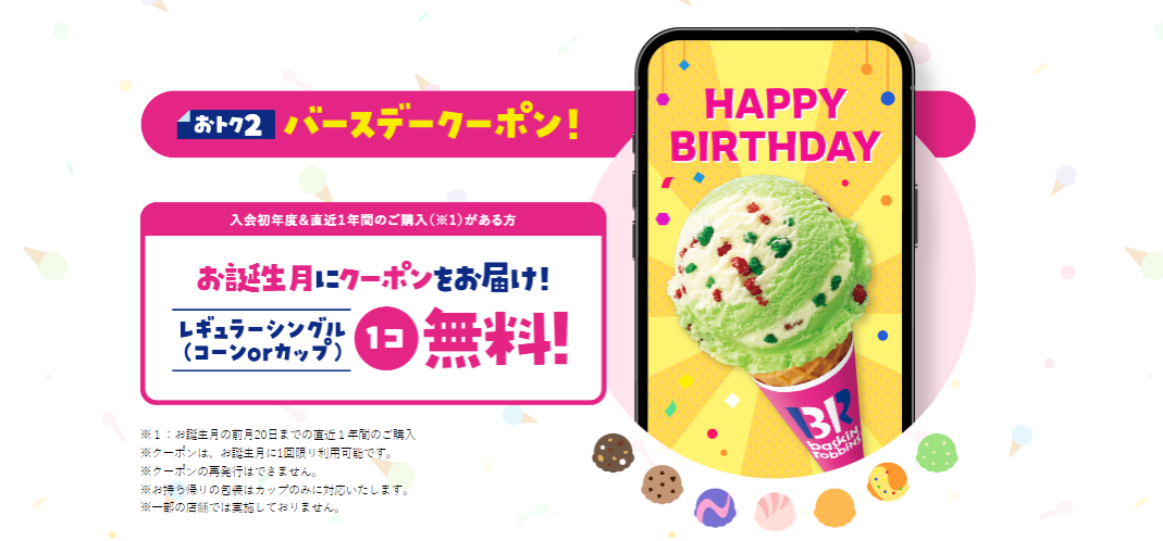 サーティワンアイスクリーム アメリカンワールド北上店     アプリ会員になるとバースデークーポンがもらえます