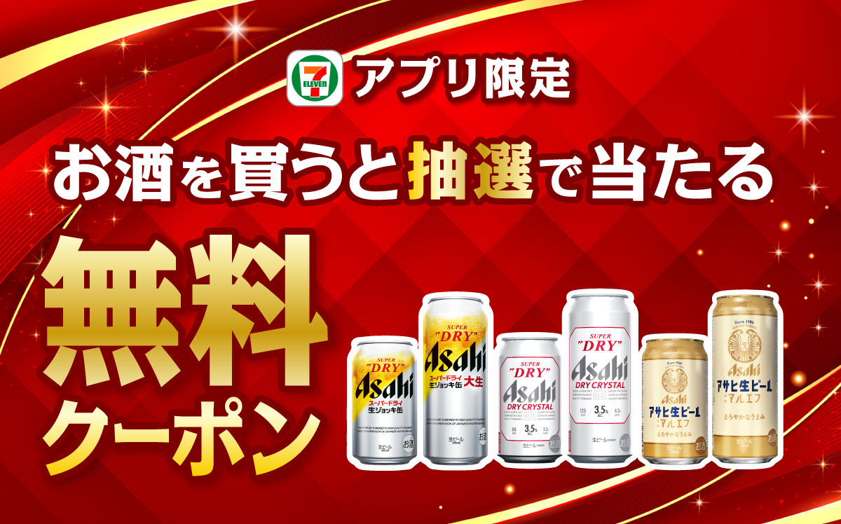 【セブンアプリ限定】対象のアサヒビール商品いずれか1本無料クーポンをプレゼント!