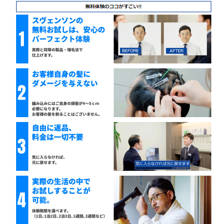 スヴェンソンでは、体験して実感しなくてはサービスの良さは伝わらないと考え全てのサービスに「初回お試し」のプログラムを設けました。