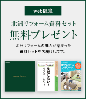 北洲リフォームの魅力が詰まった資料3点セット(リノベネクストカタログ、住まいの実測診断カタログ、住宅リフォームガイドブック)をお届けします。お問い合わせフォームよりお気軽にお申し込みください。
