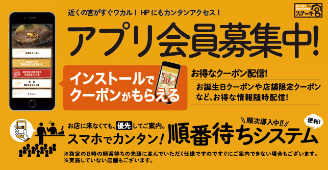 ステーキ宮 盛岡南店 アプリ会員でお得クーポンもらえます